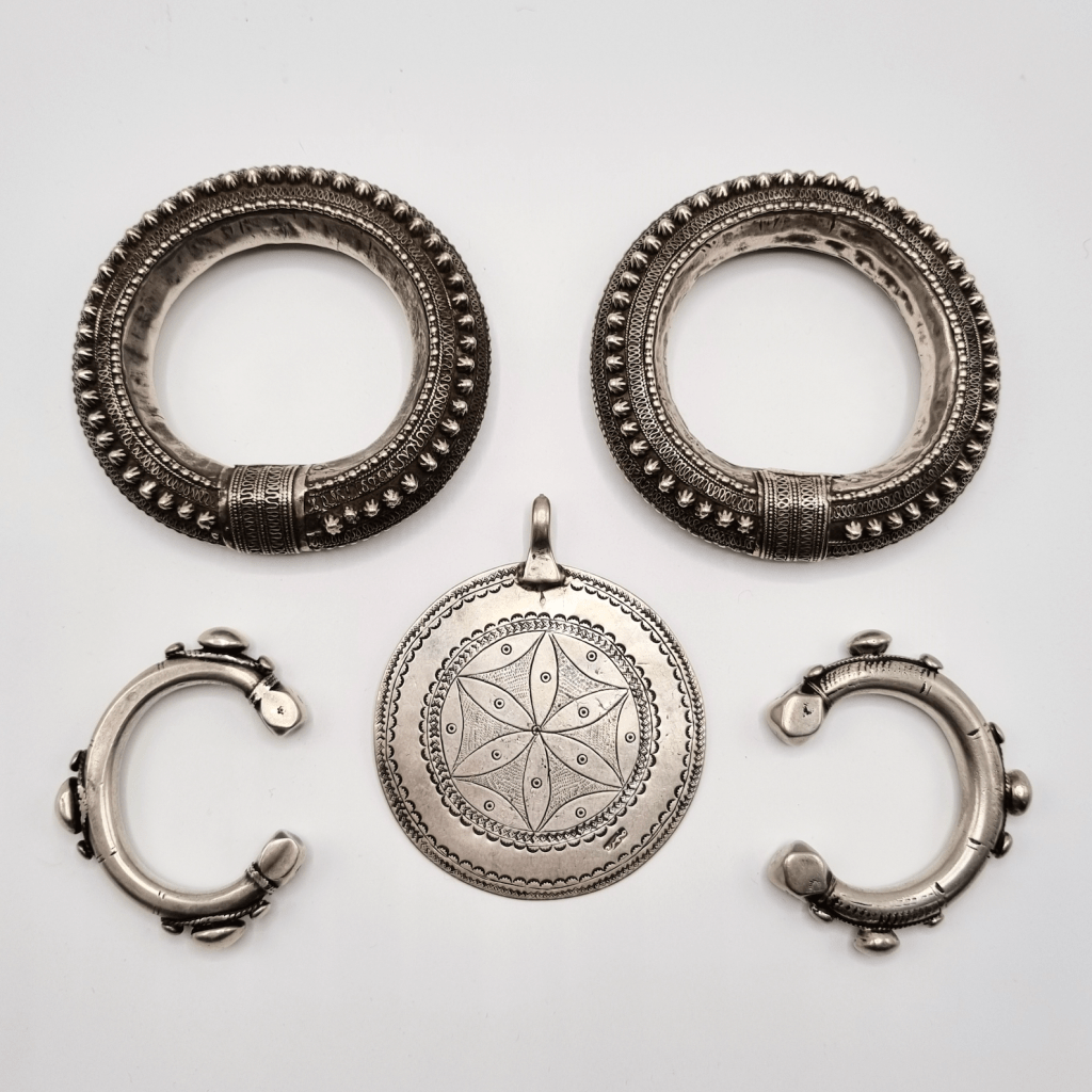 The collection holds many types of bracelets from the Nile Valley and the oases, as well as a selection of Egyptian zar jewellery. Marion also selected a few items of traditional gold jewellery. The Eric and Marion Crince Le Roy collection is important for its regional variety and eye for exceptional quality.