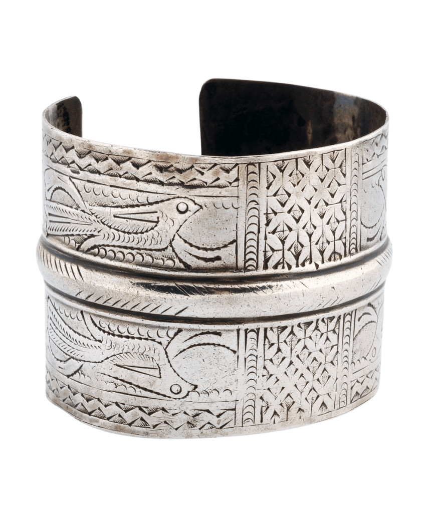 The same timeframe saw an increase in international mobility. Tourists visited in greater numbers than ever before, and many foreigners found jobs in the region. Not just as oil-workers or diplomats, but also as archaeologists, teachers or medical staff. They took an interest in the silver jewellery they encountered with silversmiths and purchased pieces as gifts, as memories of their period living in the region, or simply to admire the craftmanship with which these were made. Some of these collections have grown to be quite sizeable, and hold jewellery pieces that are now scarce in the countries they originate from.
